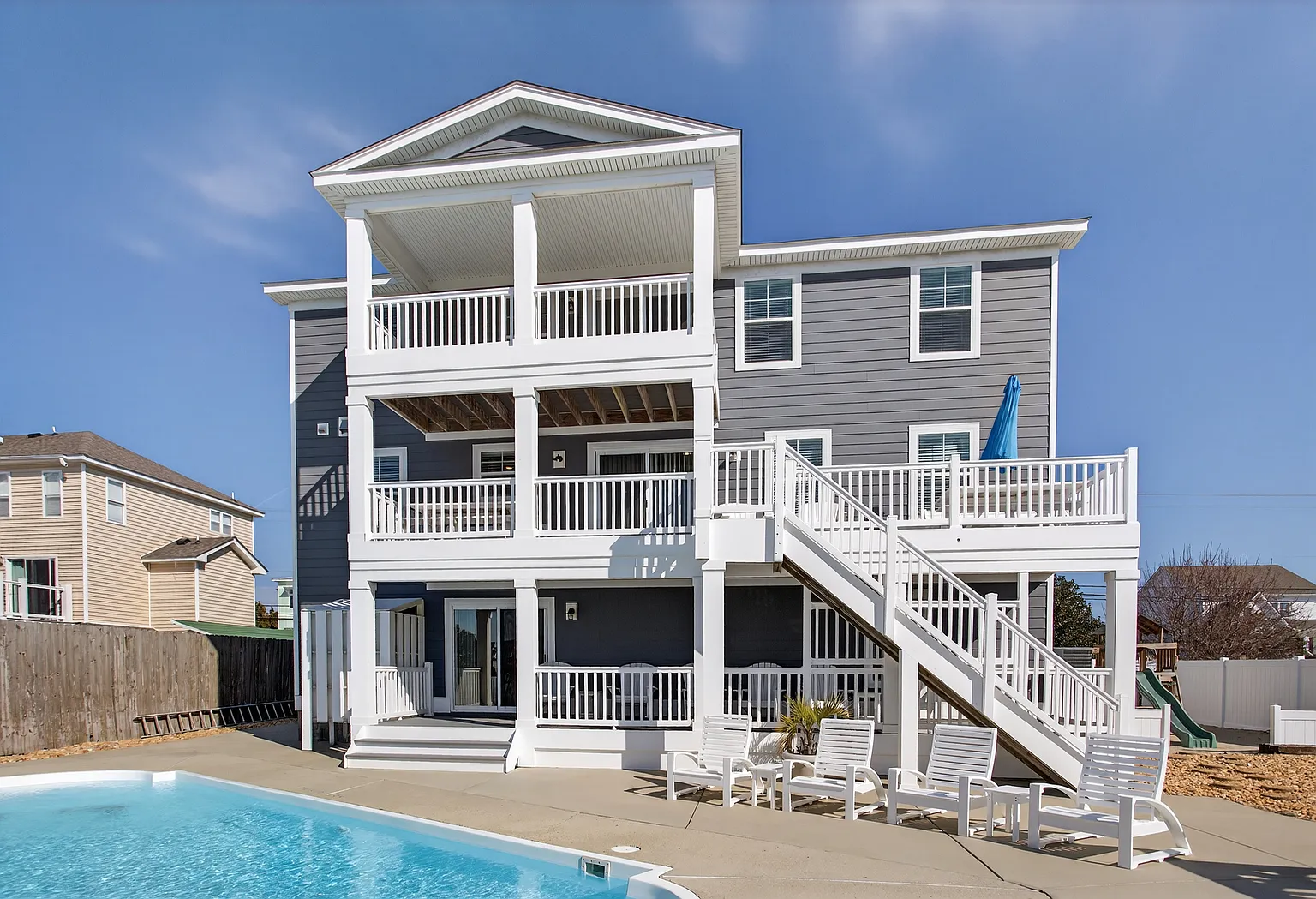 Discover the Jewel of Sandbridge! Built in 2020, this modern 3-level retreat sits just 350ft from the beach and backs directly onto the peaceful Back Bay. Perfect for multi-family getaways, the spacious layout features gathering areas and bedrooms on every floor for privacy and connection. Wake up to Atlantic sunrises and unwind with golden Bay sunsets. Whether you’re here for coastal adventure or pure relaxation, your unforgettable beach vacation starts here at the Jewel!